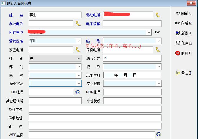 现在企业的员工流动很频繁,企业的联系人也经常变换。当前系统中,当联系人离职或没有正常在岗时,如果马上把联系人删除,在需要联系时没有相关资料可能没法联系。如果保留离职联系人信息又没有将其与正常联系人区分开,在沟通、联系时又会造成不必要的混乱(如联系人已经离职了,但由于我们这边的业务员不知道,又对以前的联系人比较熟悉,还是习惯找以前的联系人,这样不但浪费时间,也会对已经离职的联系人造成骚扰)。建议为客户客户中的联系人卡片添加联系人岗位状态内容进行区分,类似于员工卡片中的员工状态。