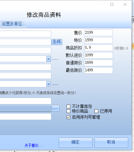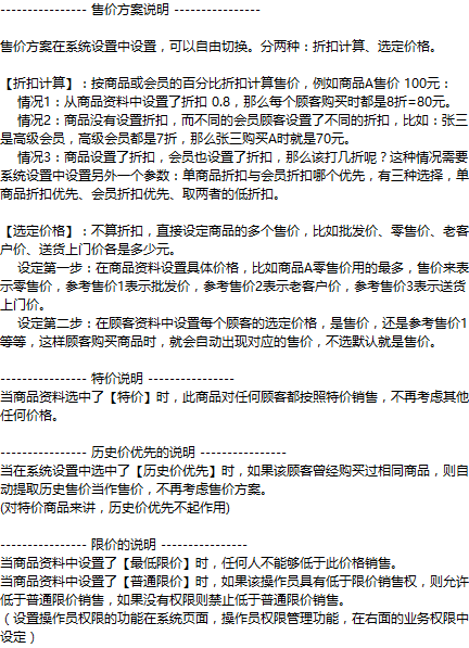 这个软件上的价格设置也仅有参考售价和最低售价,另在销售单上还有个整体折扣。还不知道操作设置才能满足更多的价格设置需要。