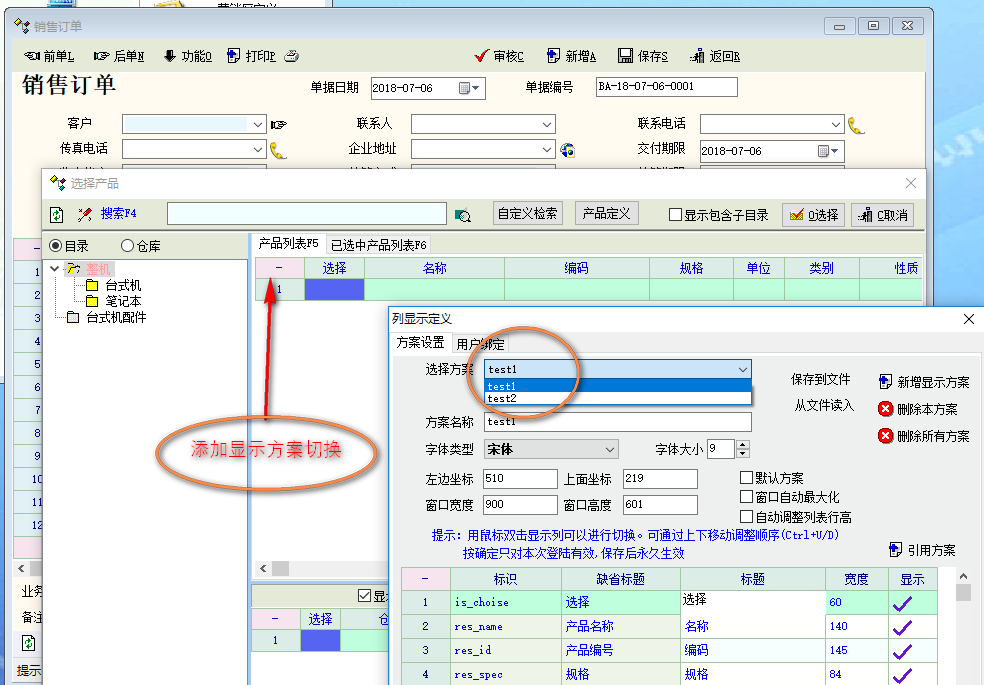 求助_选择产品窗口,可否添加列显示方案切换功能?_产供销