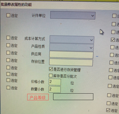 如图,现在没法批量修改“产品等级”。建议为批量修改界面上记录的属性添加“产品等级”功能。