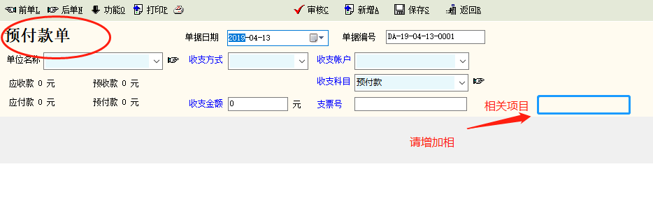 谢谢孟老师。同也请在《预付款单》《预收款单》也增加相关项目录入窗。