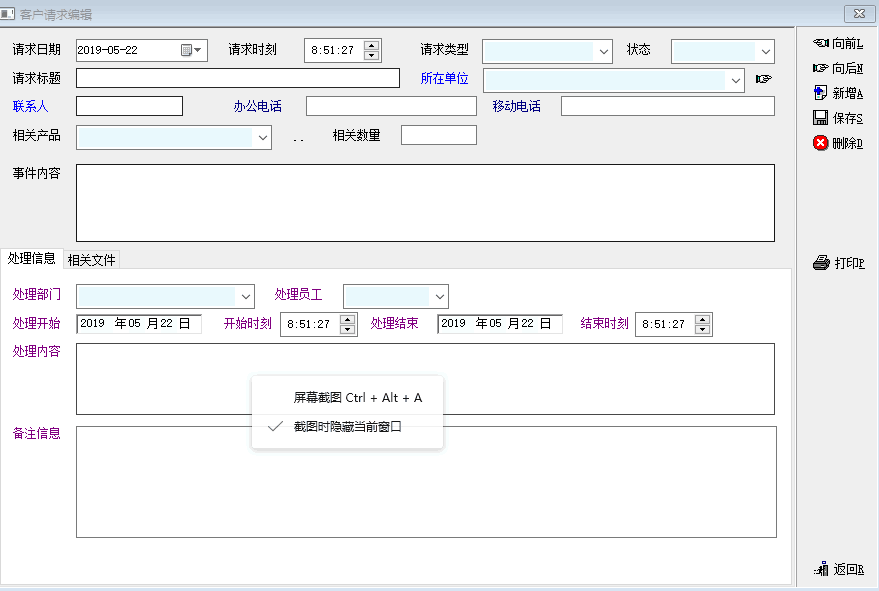 1、客户请求管理页面能不能添加发送功能,比如处理人选择后,是否可以直接发送消息给对方。