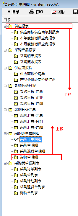 如图,因为每个企业关注的重点不同,有些报表想上移,有些报表想下移,但现在系统缺少这个功能。建议为报表节点添加调整上下顺序的功能。