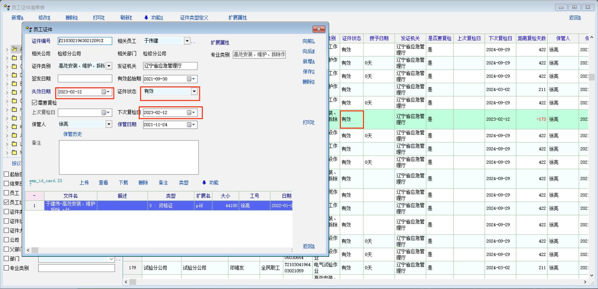证件管理中失效日期和复检日期过期后,证件状态仍然显示有效,能不能将失效日期和复检日期作为条件,过期后自动将证件状态改为失效。这样便于在搜索栏中直接按状态查找。谢谢老师!