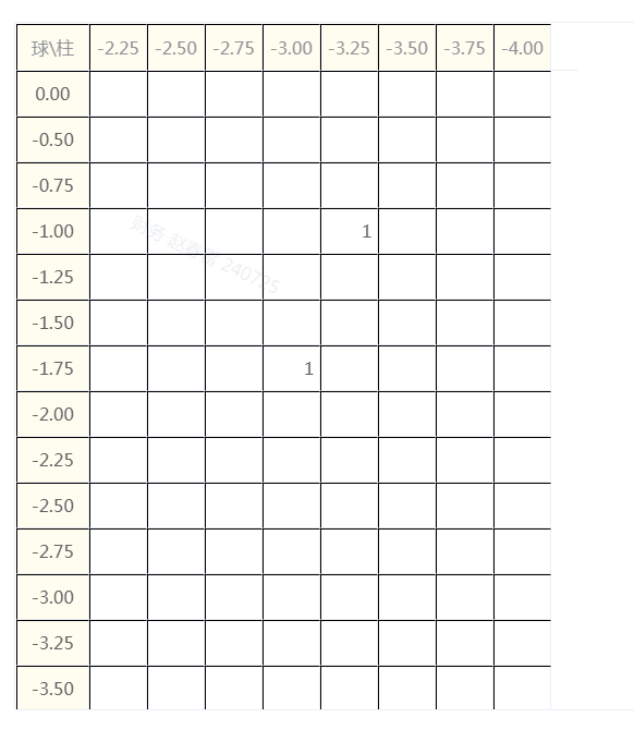 产品开票环节,主产品录入后,需要选取的补充信息涉及度数及散光的组合数据