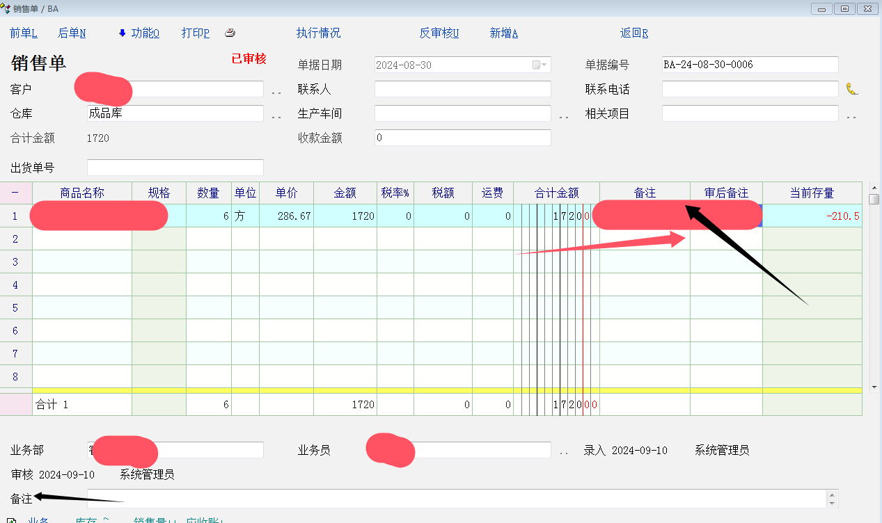 明细的备注在明细报表里体现,单据列表里体现不了